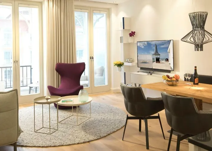 East Cloud Appartement appartement van 84 m^2 ligt binnen 9 minuten wandelafstand van Hauptstrand en omvat een balkon en een zitruimte. Het appartement ligt recht uit het Kurpark Friedensberg en biedt gasten een sauna en een buitenzwembad.